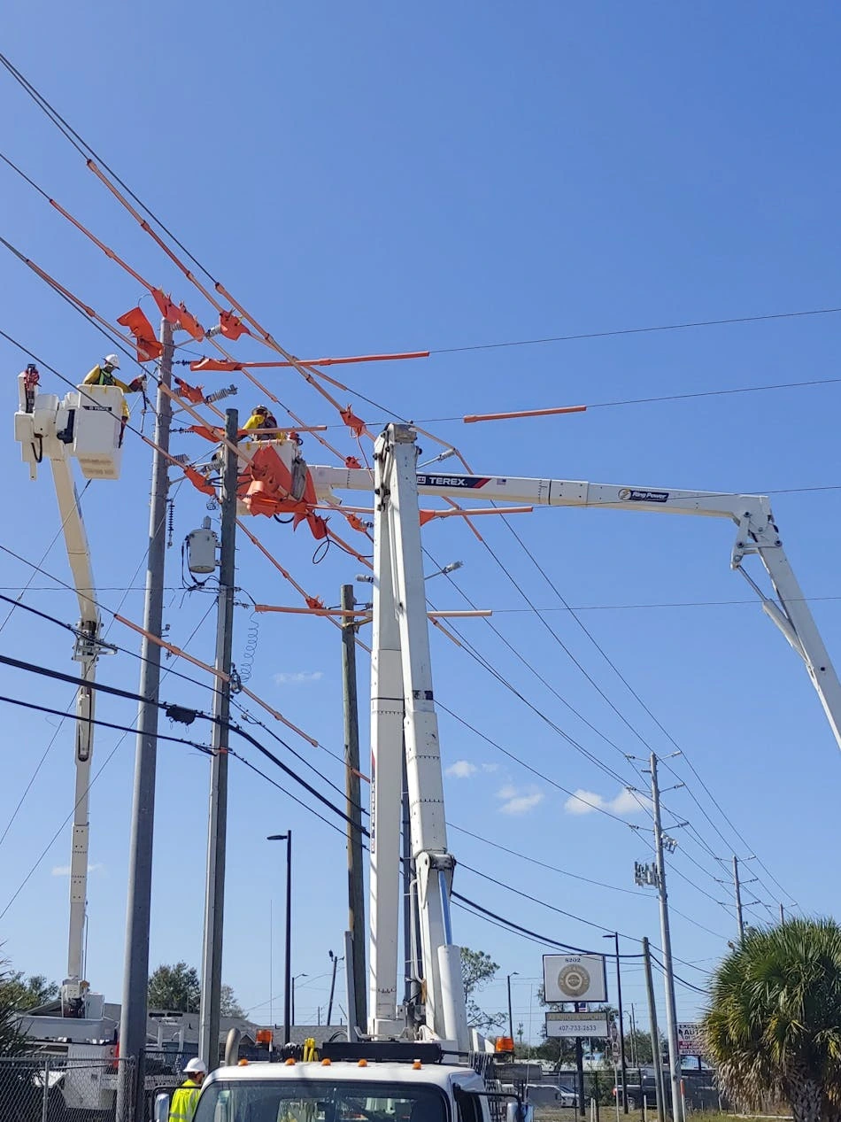“Our job site manager looked at the design and saw that putting the express feeder underground would take several county and special permits and likely a year of construction, including tearing up over a mile of sidewalk, lane closures for equipment, and more,” said John Wingfield, director of field operations for Victory Powerline Services. “Going underground would also include cranes at a rate of $3,000 to $4,000 per day as well as the cost of boring machines, working at night to abide by the permitting, and traffic control.”