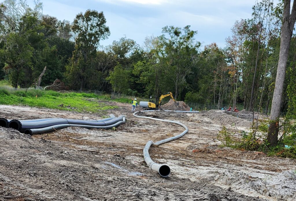 Crews have laid out 7-inch distribution pipe in preparation for boring a portion of the one-mile underground project (Credit: ATK Energy Group)